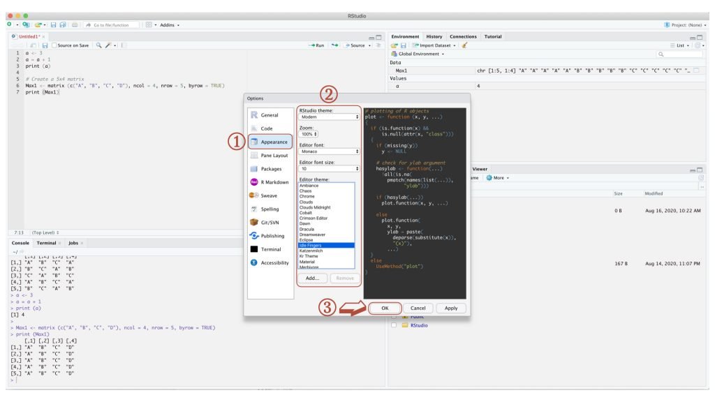 RStudio 可根據自己的偏好調整介面,就像我們選 LINE 主題一樣(?)